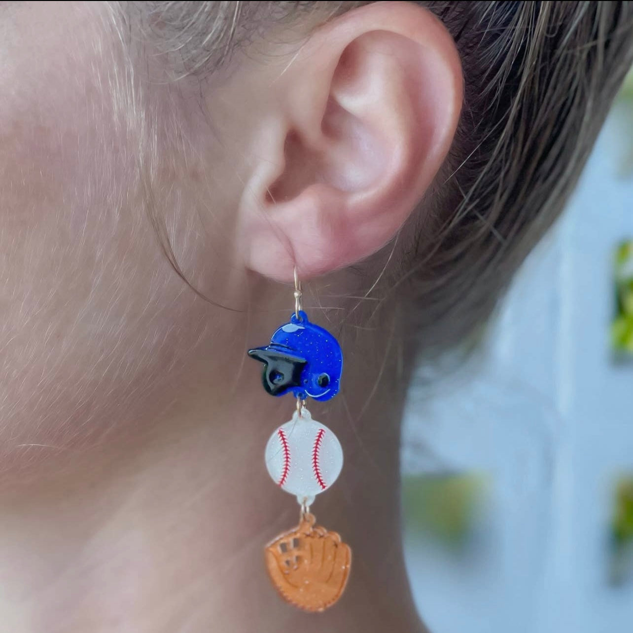Acrylic Baseball Layered Dangle Earrings