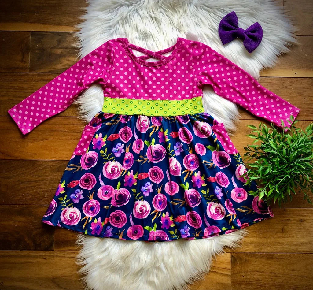 Bold Plum Floral Twirl Dress by Wellie Kate