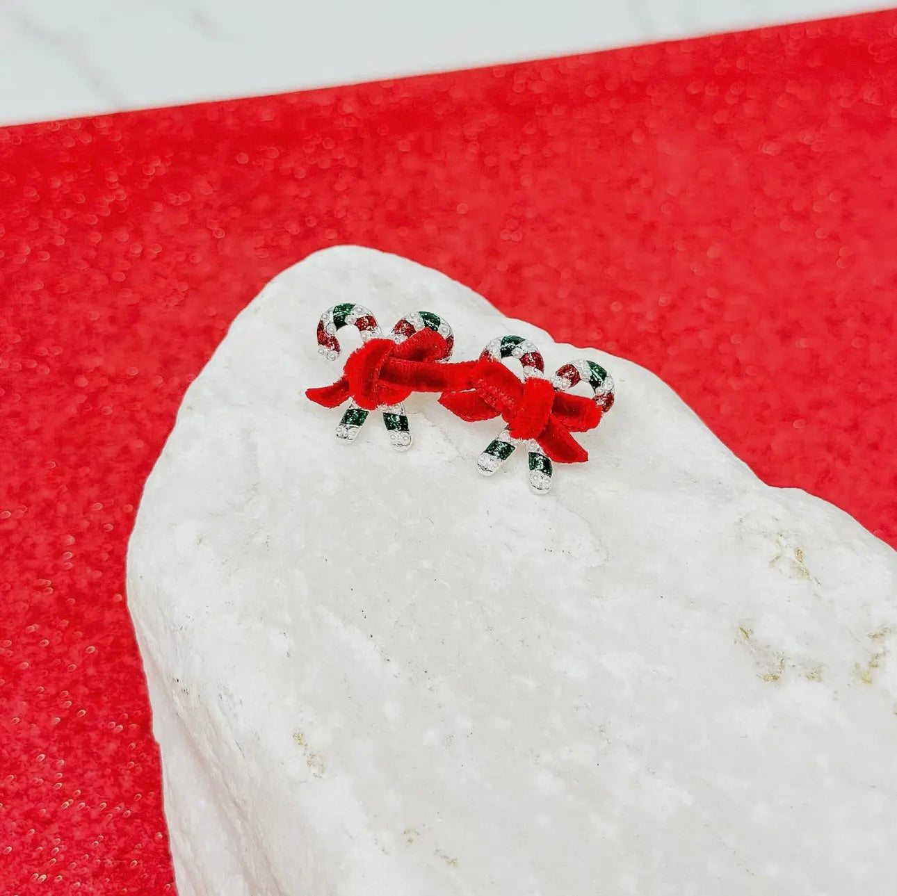 Pearl Striped Candy Cane Stud Earrings