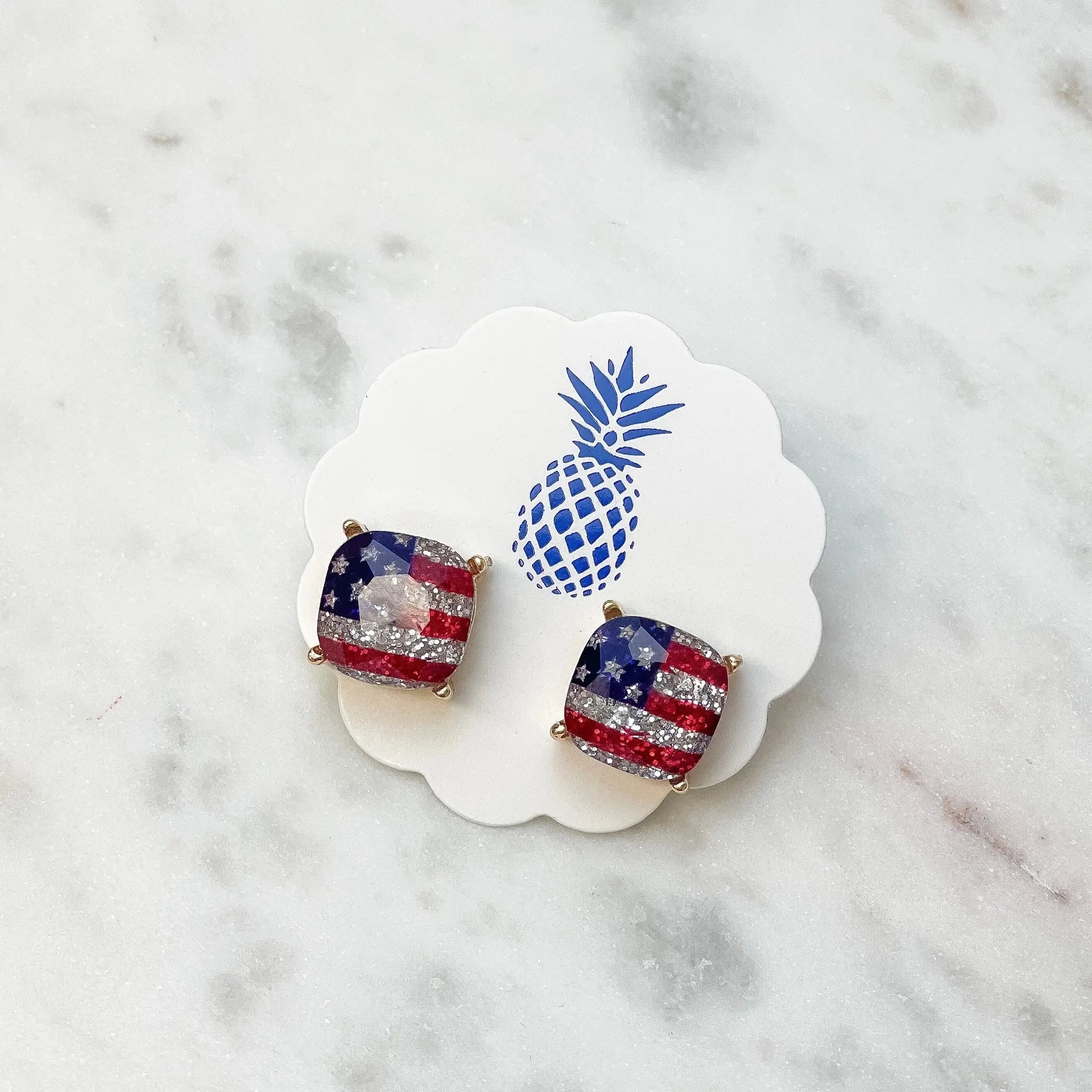 Silver Glitter American Flag Stud Earrings by Prep Obsessed